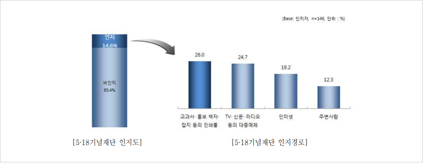 - 5·18기념재단에 대해 청소년의 14.6%는 알고 있는 것으로 나타남.