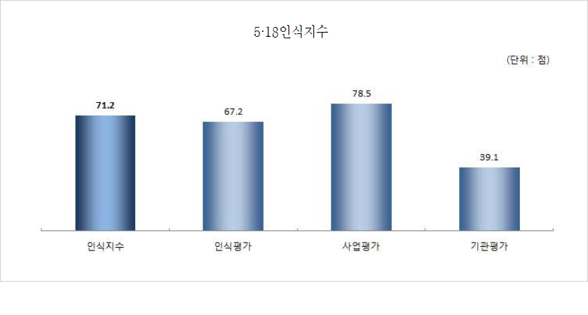 였고, 다음으로 ‘5·18민주화운동 인식평가’(67.2점), ‘기념재단 인지도에 대한 기