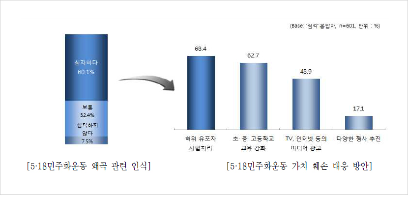 - 5․18민주화운동에 대한 비방과 왜곡과 관련해서 청소년 중 60.1%는 심각한 문