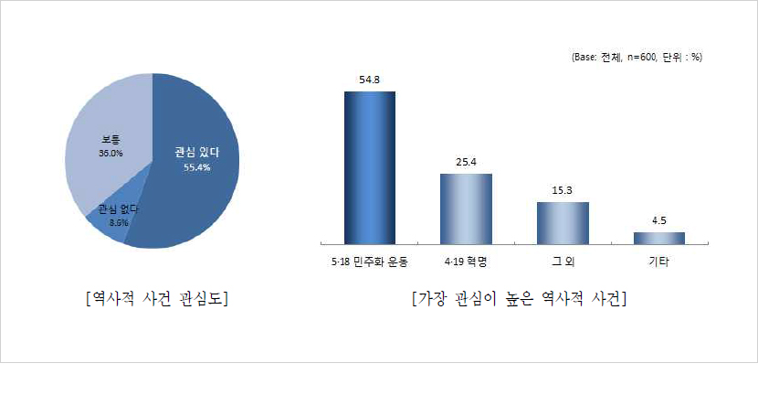 건 중 가장 관심이 높은 사건은 ‘5·18민주화운동’이 44.3%로 가장 높게 나타나