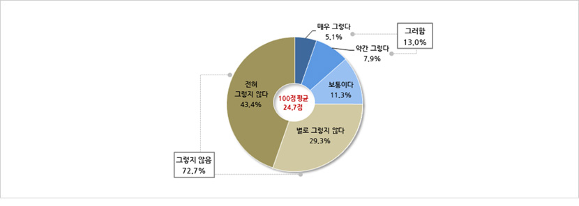 - 5·18 기여도는 5·18기념재단 ‘인지자’가 73.2점으로 ‘비인지자’(69.3점) 보다 높게 나타남.