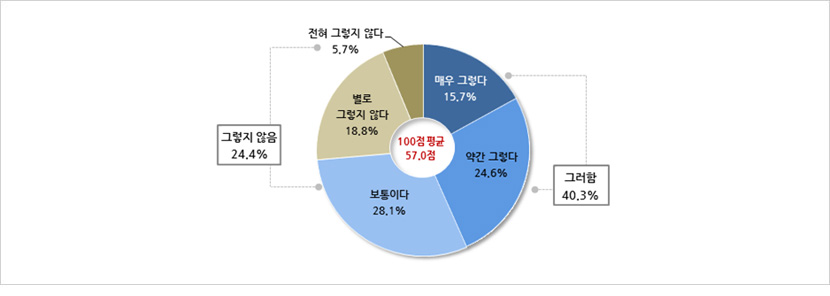 - 5·18 국민인식지수는 5·18기념재단 ‘인지자’가 73.5점으로 ‘비인지자’(62.4점)보다 높게 나타남.