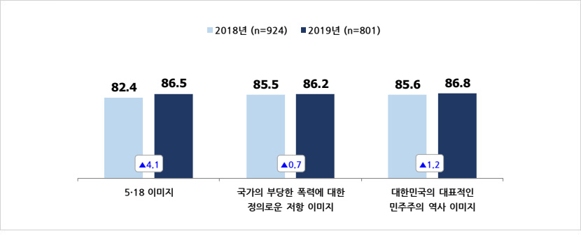 - 2019년 5·18 이미지는 86.5점으로 2018년(82.4점)에 비해 4.1점 상승함