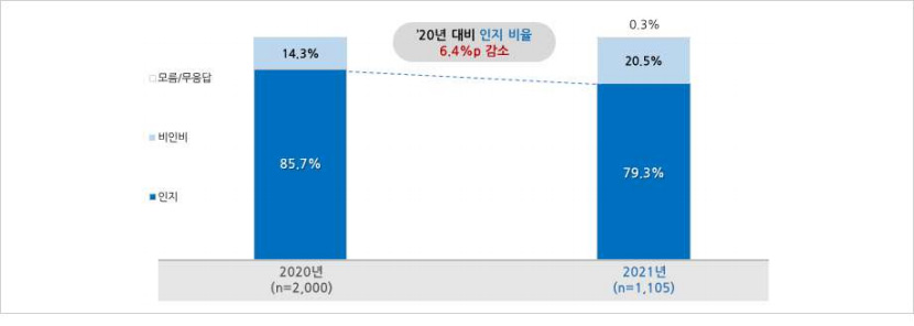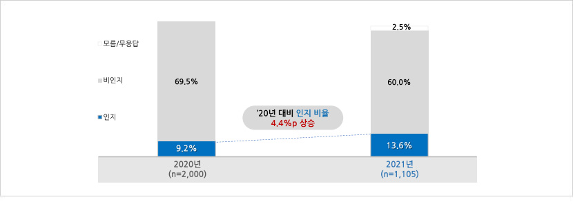 - 전년도 조사 결과와 비교해보면, 인지도가 4.4%p 소폭 상승함