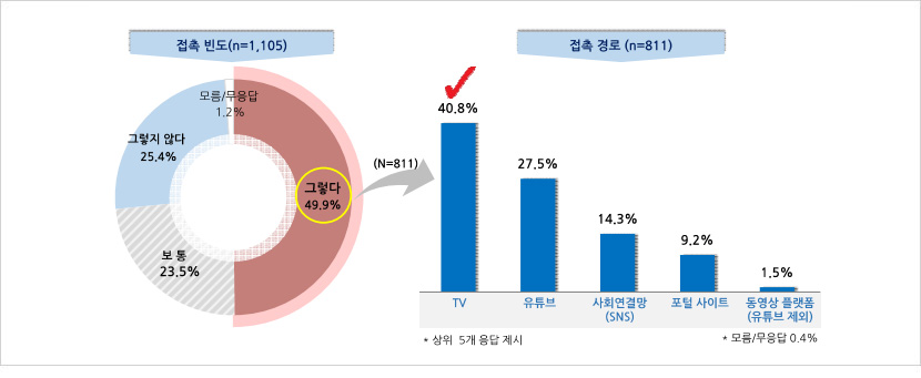 - 인지 경로는 ‘TV’의 경우 4.0% 하락하였으나 ‘유튜브’의 경우 6.6%로 소폭 상승함
