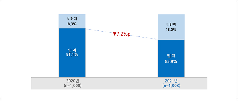 - 전년 대비 11.8%p 하락한 것으로 조사됨